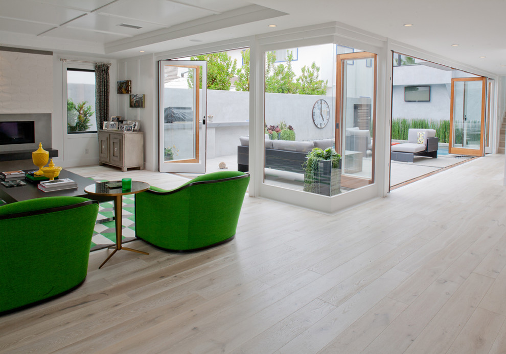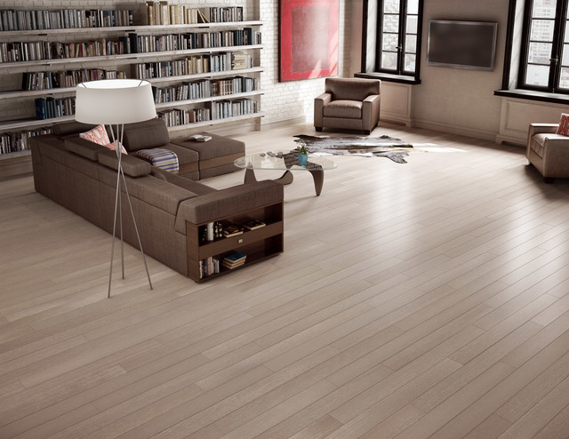 Solid French Wire Brushed White Oak Contemporary Living Room