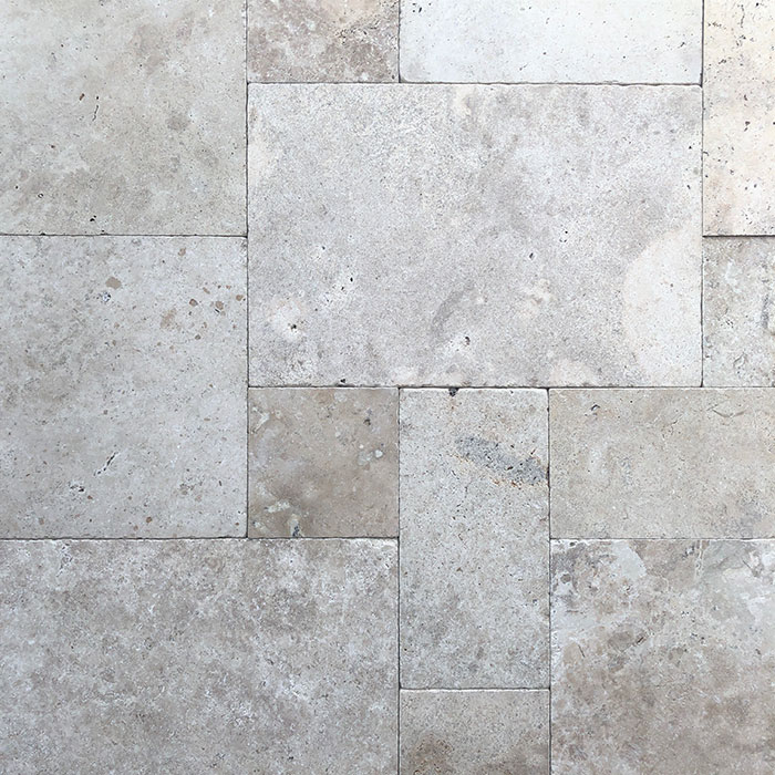Jasper Grey French Pattern Tumbled Unfilled Travertine Tile 8718