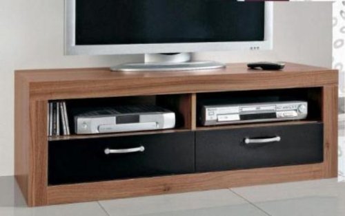 Wohnwand Front Walnuss Nachbildung Schwarz Korpus Walnuss