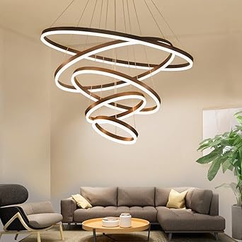 Led Lampen Dimmbar Kronleuchter 5 Ring Runde Hangeleuchte Brown