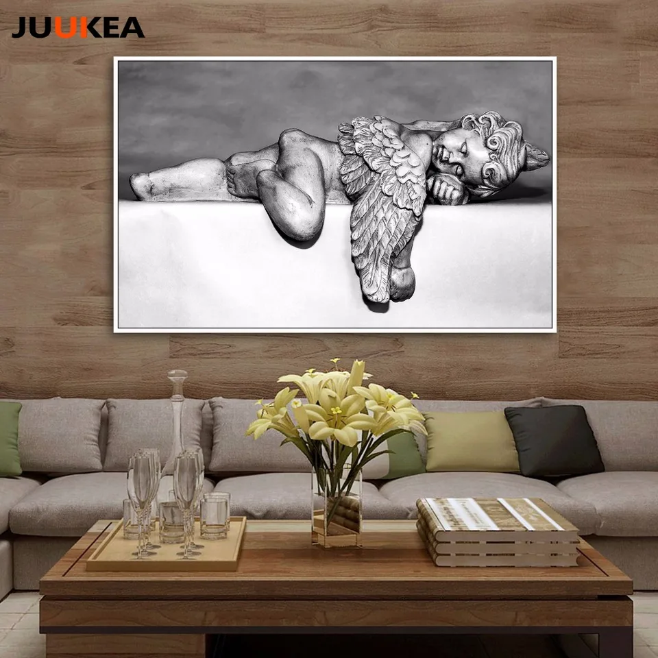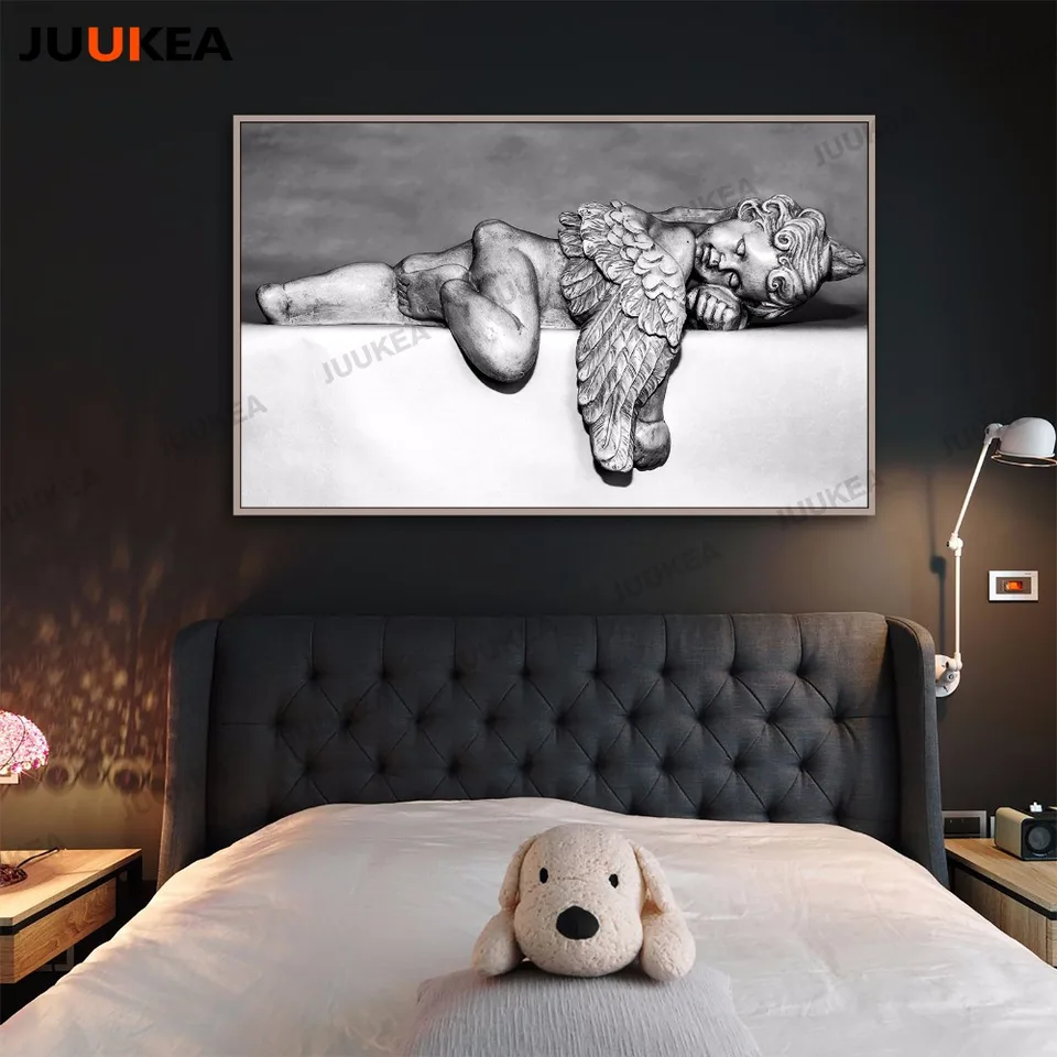 Schlafen Weihnachtsengel Wachter Schwarz Weiss Stil Leinwanddruck