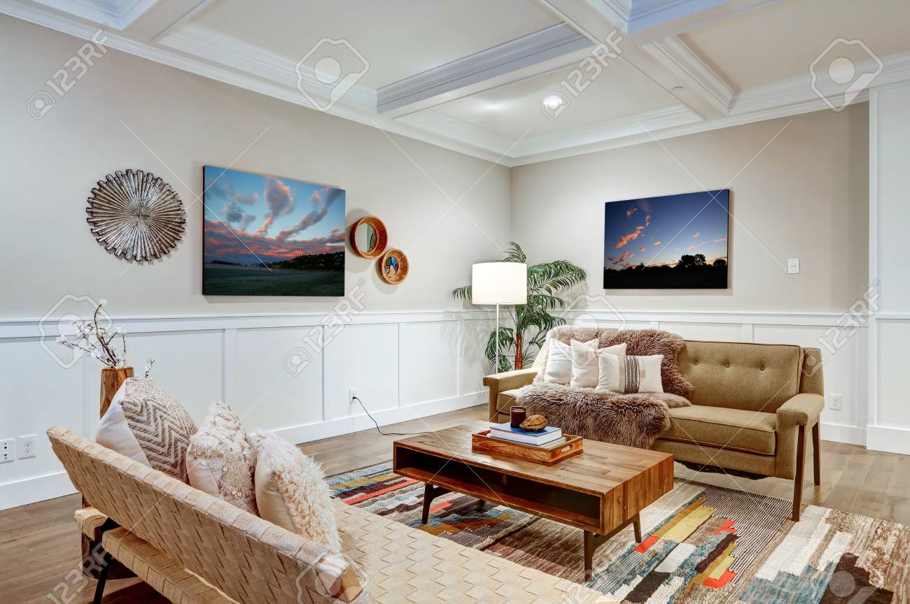 Lovely Handwerker Stil Wohnzimmer Mit Kassettendecke Uber